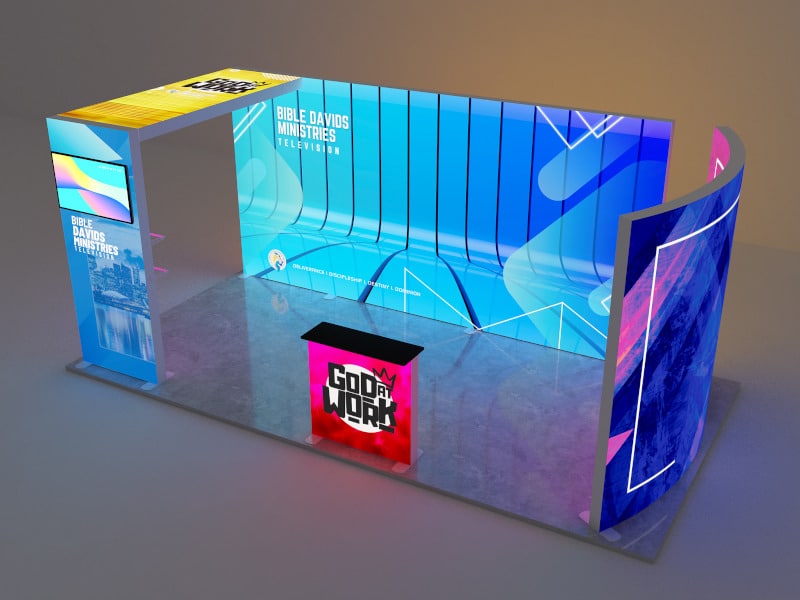 Mit BOX-STUDIO TWELVE erhältst du ein modular aufgebautes LED-Messestand-Set, das höchste Flexibilität, beeindruckende Fernwirkung und moderne Markenpräsentation vereint. Die Kombination aus einer großflächigen Hauptwand, mehreren Erweiterungsmodulen und einem beleuchteten Counter macht das Set zur idealen Lösung für Standflächen ab ca. 18 m².
