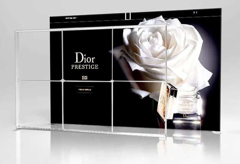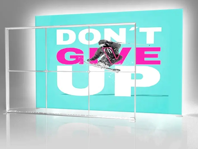 Die Konstruktion ist leicht, stabil und zu 100 % werkzeuglos montierbar – in wenigen Minuten ist dein kompletter Stand einsatzbereit. Dank des modularen Aufbaus kannst du beide Elemente flexibel anordnen oder später um weitere Module ergänzen. Die austauschbaren Textilgrafiken ermöglichen es dir, das Design jederzeit zu aktualisieren – ganz ohne neue Hardware kaufen zu müssen.
